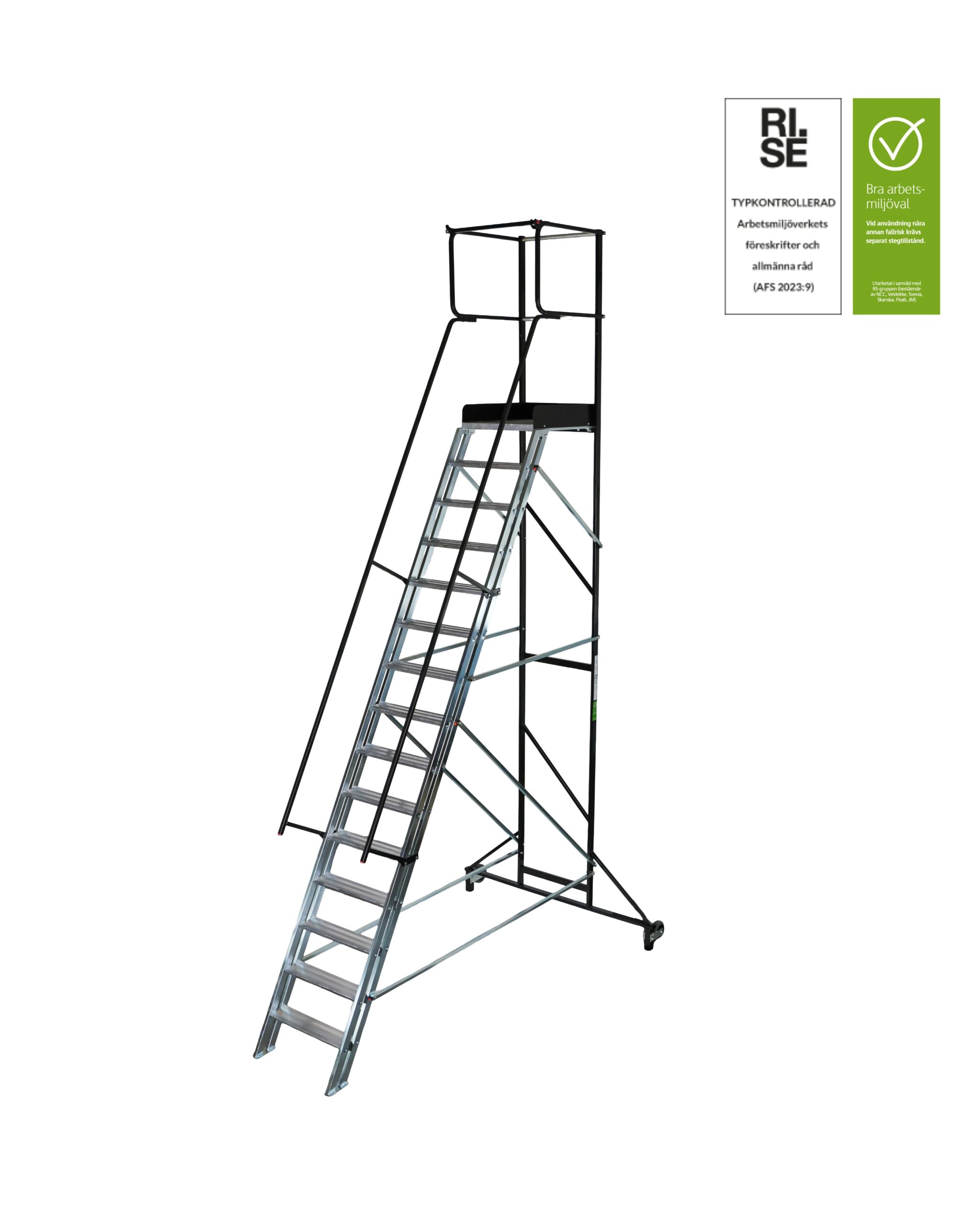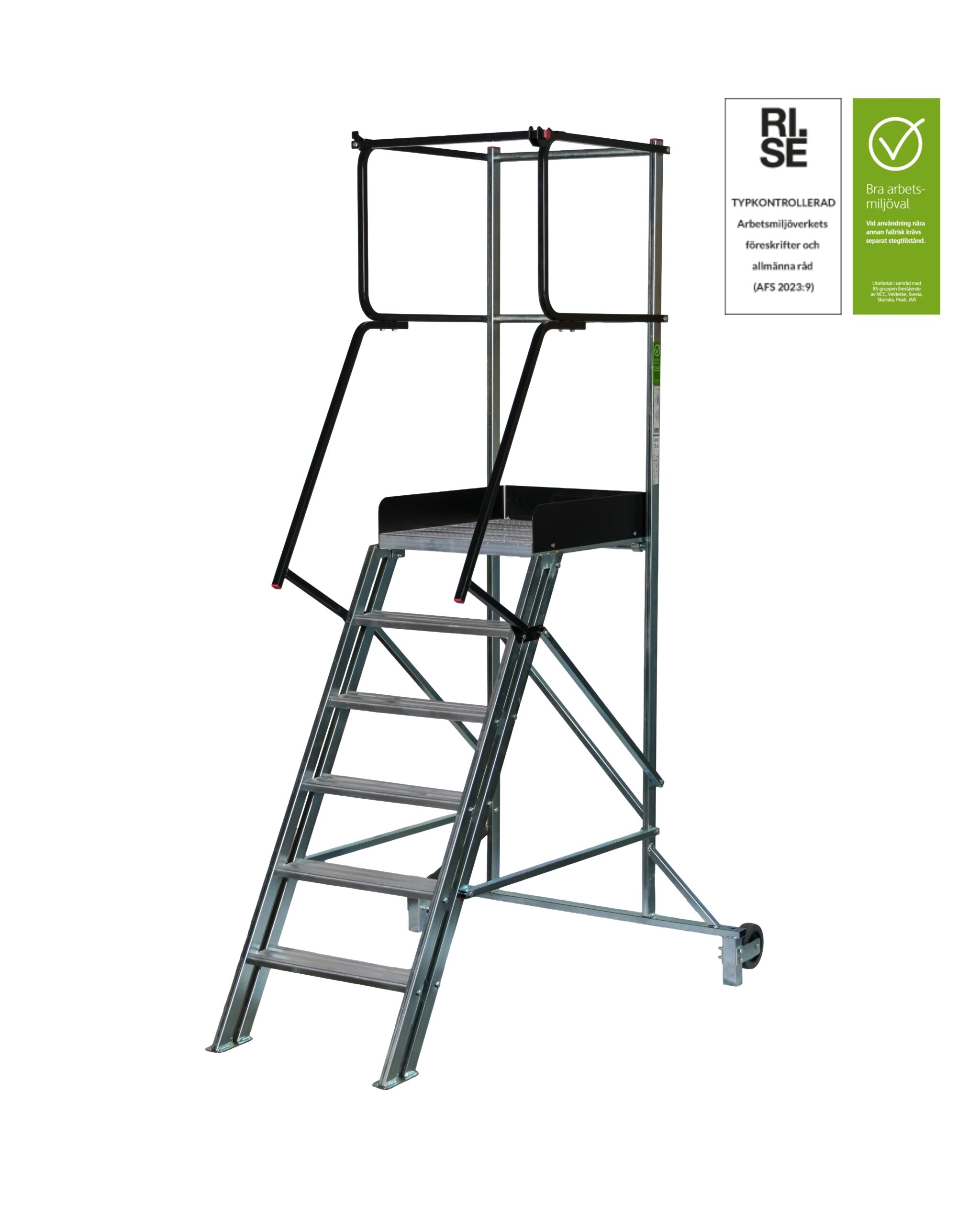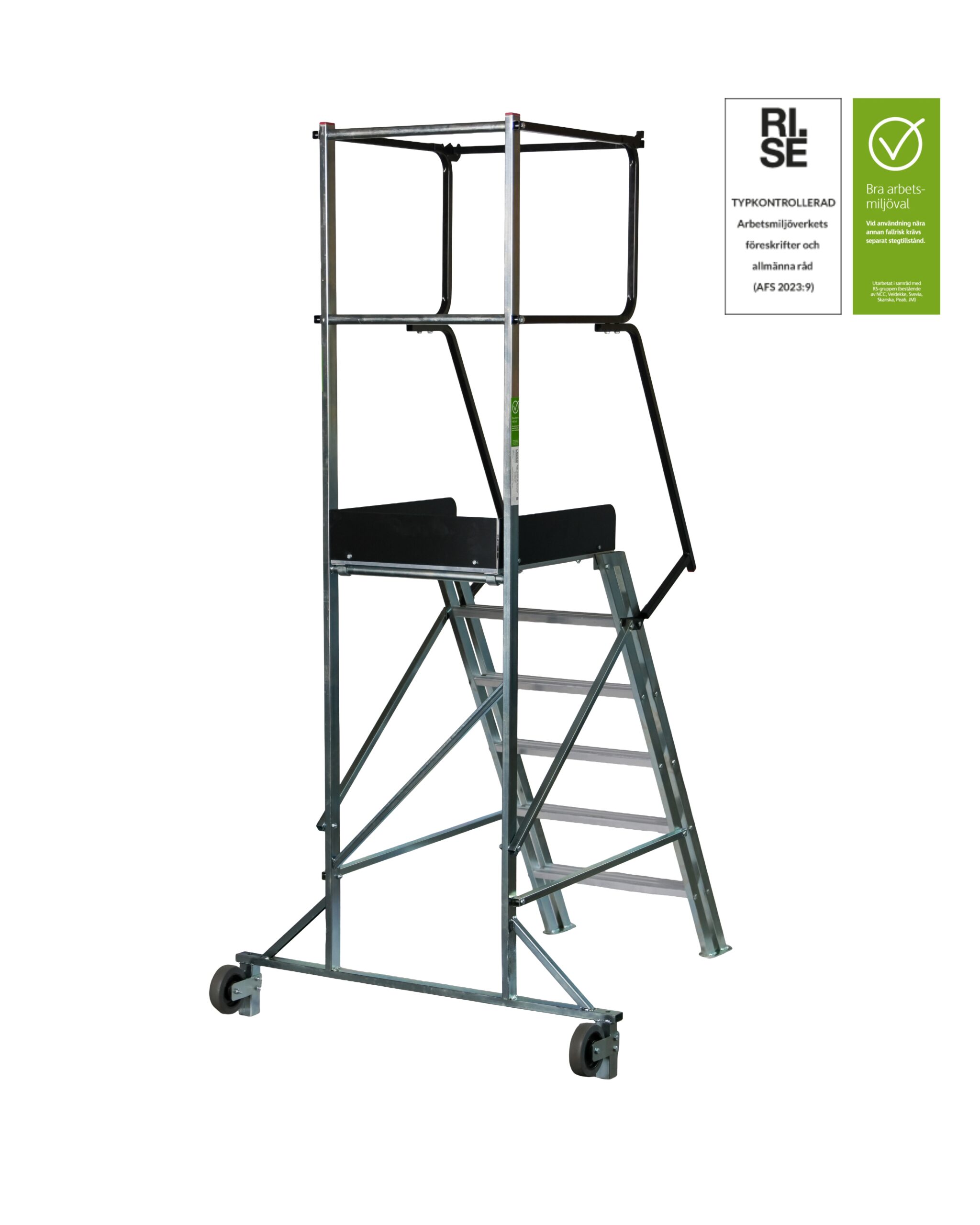 Certifierad enligt Arbetsplattformsstandard EN131-7, AFS 2023:9 och Bra Arbetsmiljöval.