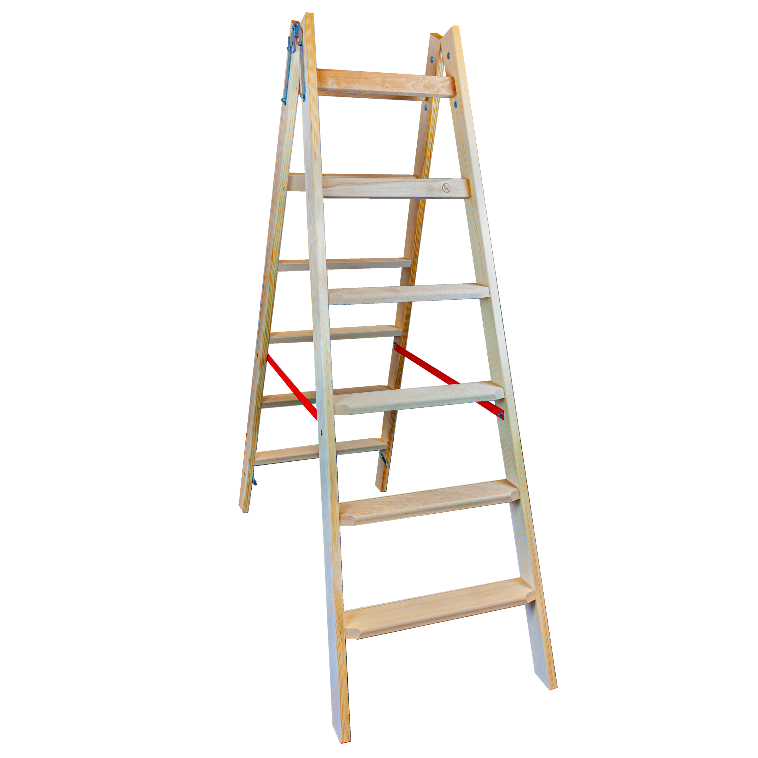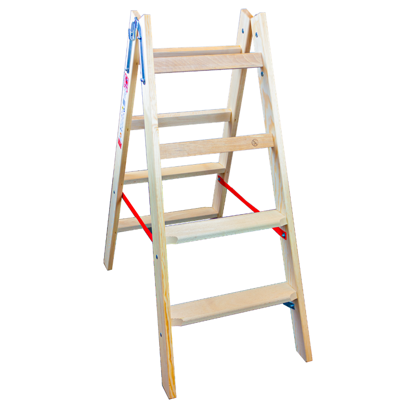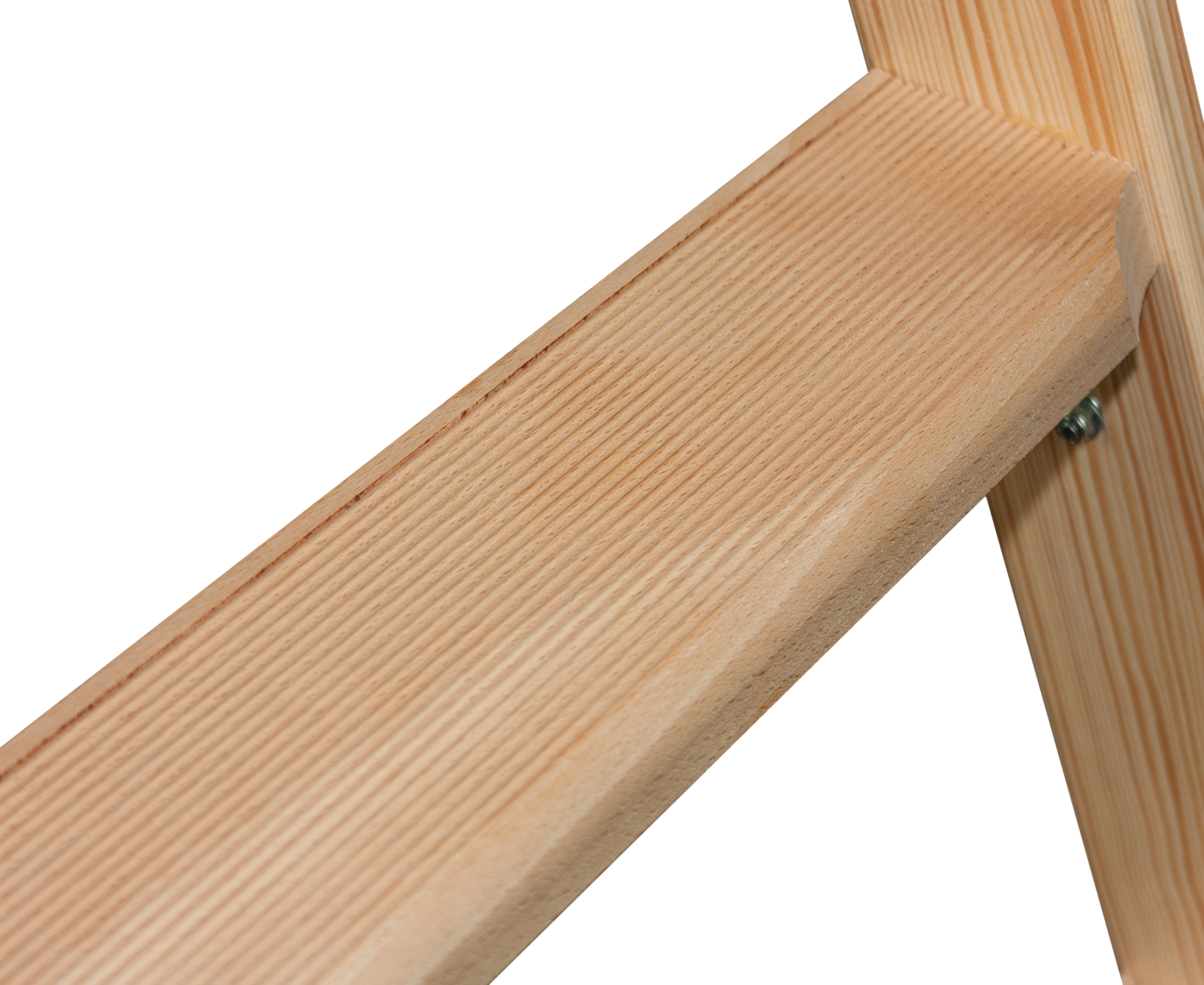 Proffs trästege med extra breda ergonomiska steg på 80mm. Hinkkrokar på båda sidorna och starka remmar som håller stegen stabil. Steg av bokträ, medans stegpinnarna är tillverkade av massiv furu.