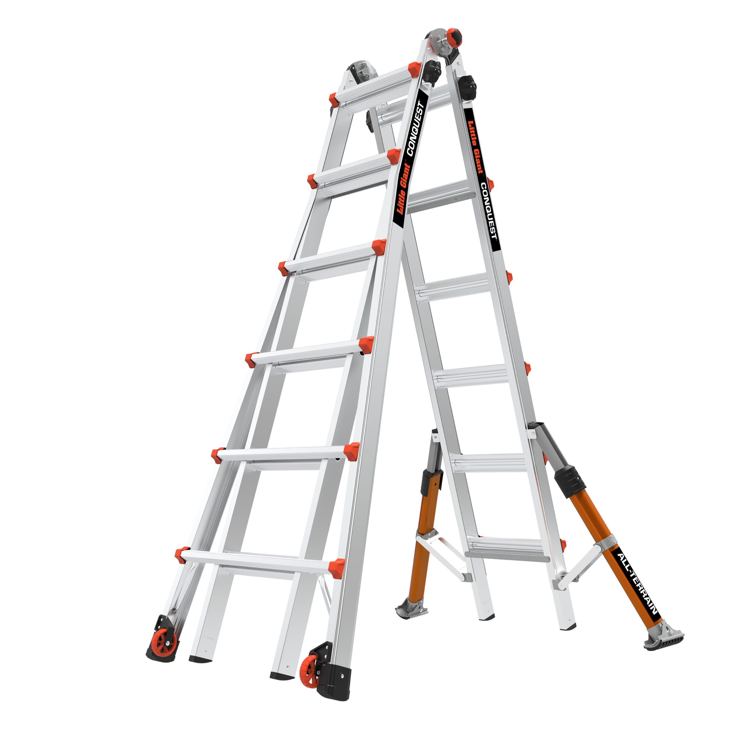 Giant Multistege Conquest Aluminum är en robust och lätt hantverksstege tillverkad av höghållfast aluminium med korrosionsbeständighet. Utrustad med Quad-Lock™ knoglås, vinklade steg och teleskopiska stödben kombinerar den ergonomi, stabilitet och flexibilitet.
